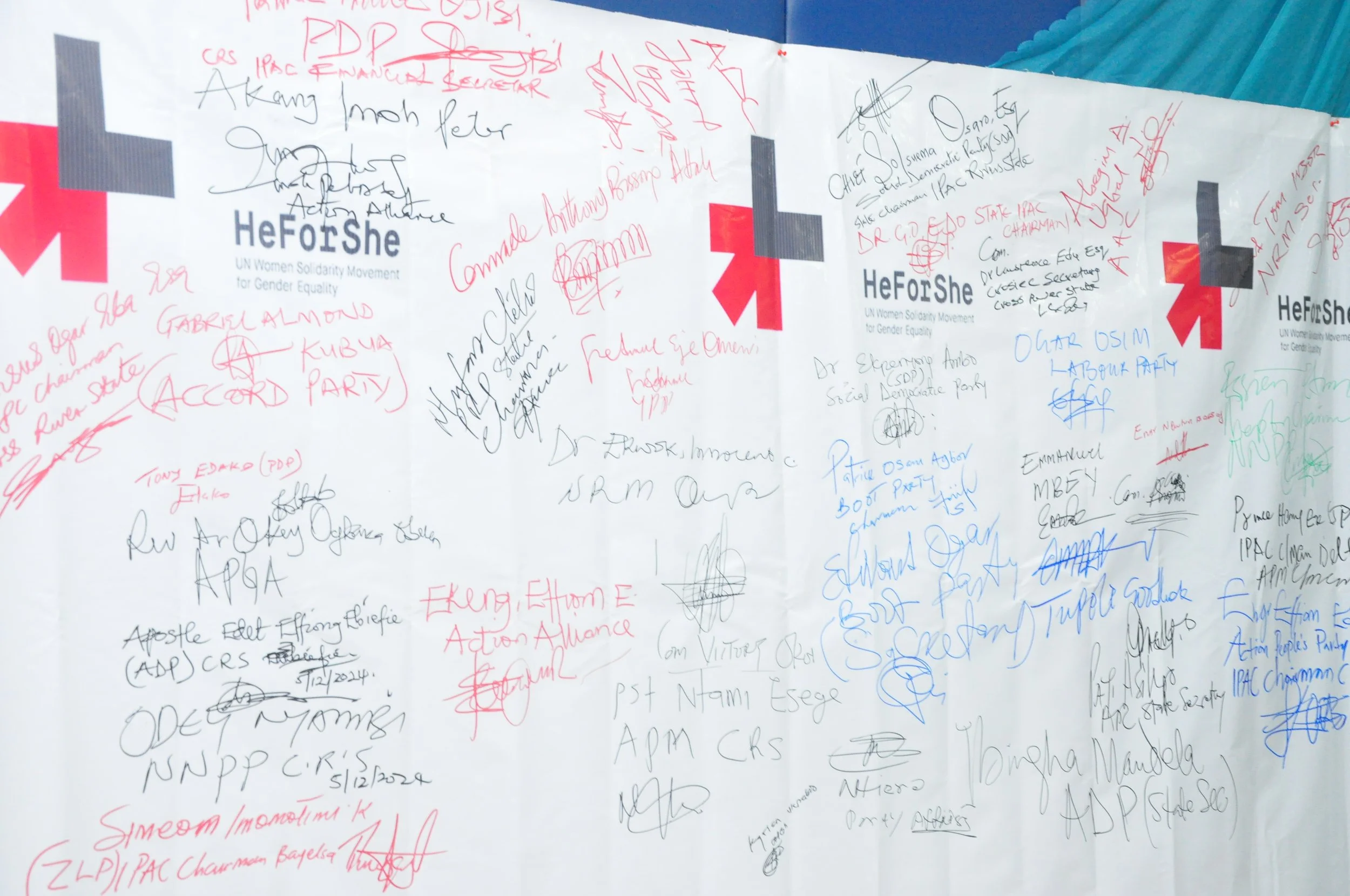 A He4She Campaign Charter signed by representatives and heads of various political parties and gender equality advocates